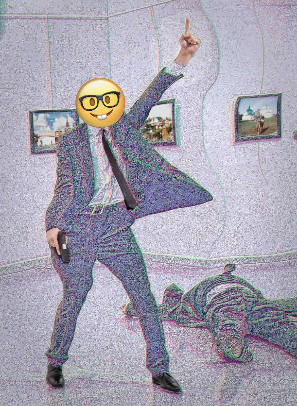 Mord an einem Nerd-Gesicht in einer Galerie. (Politisch)